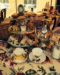 Afternoon tea can be enjoyed in the beautifully decorated Vintage Tea Room, where teas, handmade cakes and scones with clotted cream and jam are served on china from a tea trolley by vintage styled tea ladies and gentlemen.